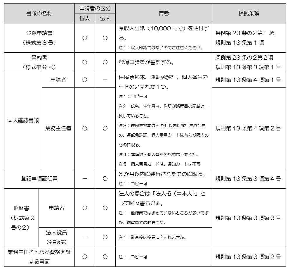 注:申請書の所定欄に、滋賀県収入証紙(登録審査手数料)を貼付してください。